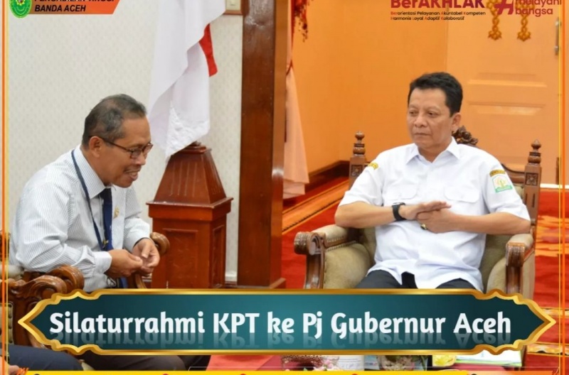 Banda Aceh - (7/9/2022) Ketua Pengadilan Tinggi (KPT) Banda Aceh, Dr Suharjono yang baru beberapa hari bertugas di Aceh bersilaturahmi dengan Penjabat Gubernur Aceh, Ahmad Marzuki, Rabu 7 September 2022.