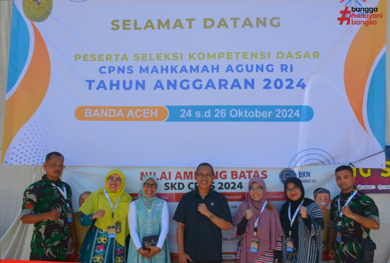 Banda Aceh, 24/10/2024. Pada hari Kamis tanggal 24 Oktober 2024, Ketua Pengadilan Tinggi Banda Aceh, Dr. H. Suharjono, S.H., M.Hum., secara resmi membuka kegiatan Ujian Seleksi Kompetensi Dasar (SKD) Calon Pegawai Negeri Sipil (CPNS) Mahkamah Agung Republik Indonesia Tahun 2024. Acara pembukaan berlangsung di Kantor Badan Kepegawaian Negara (BKN) Regional XIII Aceh dan dihadiri oleh sejumlah pejabat penting dari berbagai lembaga peradilan di Aceh.