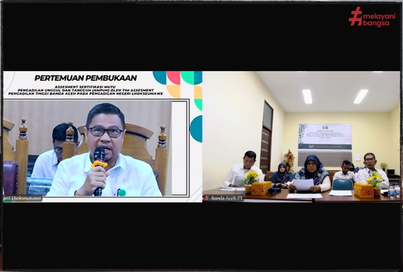 Banda Aceh, 7/10/2024. Pengawasan dan Assessment Sertifikasi Mutu Peradilan Unggul dan Tangguh (AMPUH) pada Pengadilan Negeri Lhokseumawe oleh Pengadilan Tinggi Banda Aceh telah dilaksanakan secara daring melalui zoom meeting pada hari Senin tanggal 7 Oktober 2024. Tim Pengawasan dan Asesmen yang bertugas dipimpin oleh H. Makaroda Hafat, S.H., M.Hum. sebagai Ketua Tim, Rahmawati, S.H. sebagai assessor dan Irwan Efendi, S.H., M.H. sebagai Hakim Tinggi Pengawas Daerah. Selain itu, tenaga admin yang turut serta dalam kegiatan ini Munawar, S.T., Lydia Andalusia, S.T., Nofyani, S.T., dan Hadi Saputra, S.E.