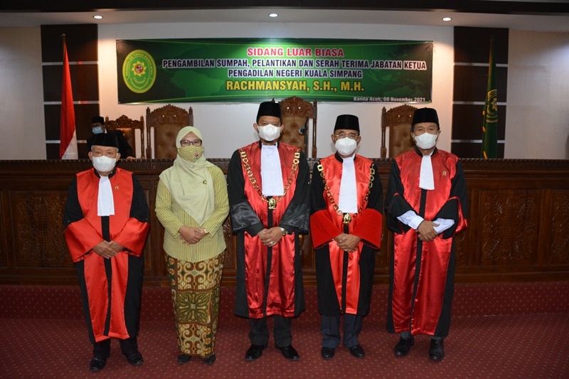 Banda Aceh - (8/11/2021) Ketua Pengadilan Tinggi Banda Aceh, Dr. H. Gusrizal, S.H., M.Hum., mengambil sumpah dan melantik Ketua Pengadilan Negeri Kuala Simpang.