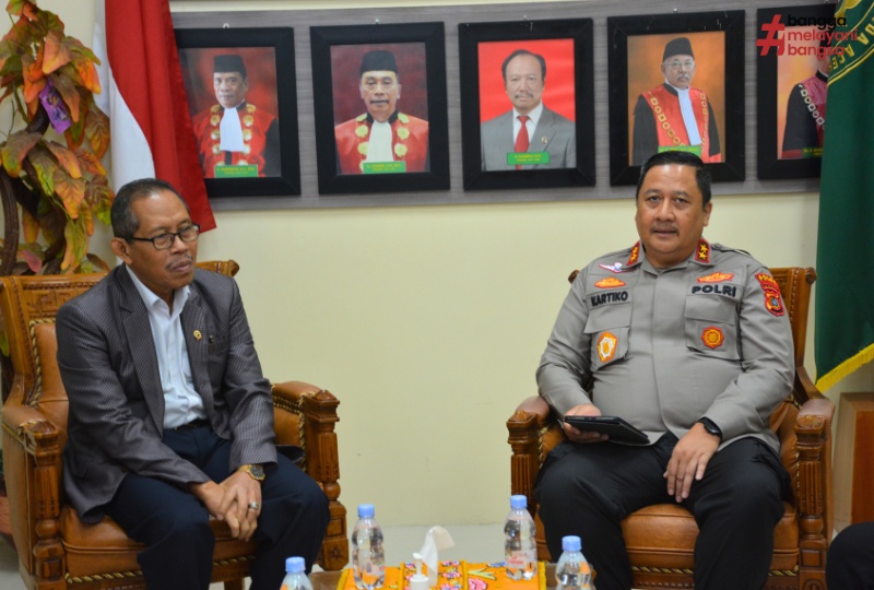 Kunjungan Kapolda tersebut diterima langsung oleh Ketua Pengadilan Tinggi (KPT), Dr H Suharjono, SH, MHum yang didampingi oleh Hakim Tinggi; Syamsul Qamar, MH, Firmansyah, MH dan Hakim Humas, Dr Taqwaddin.