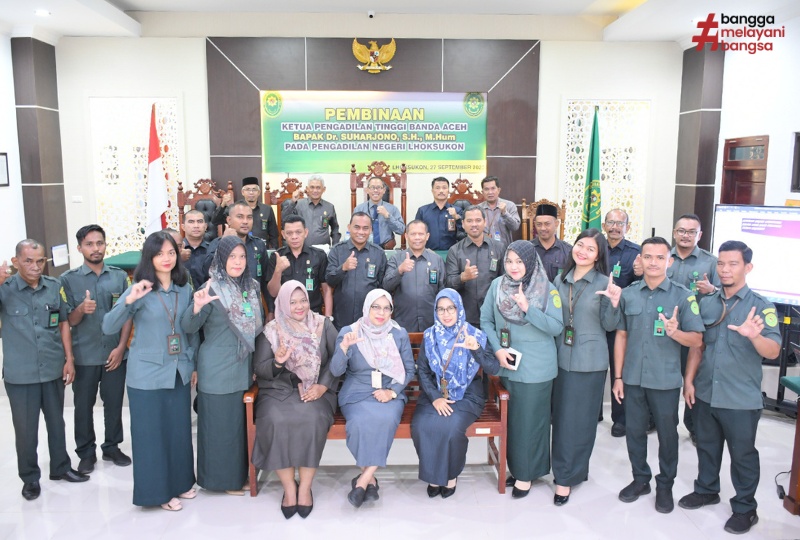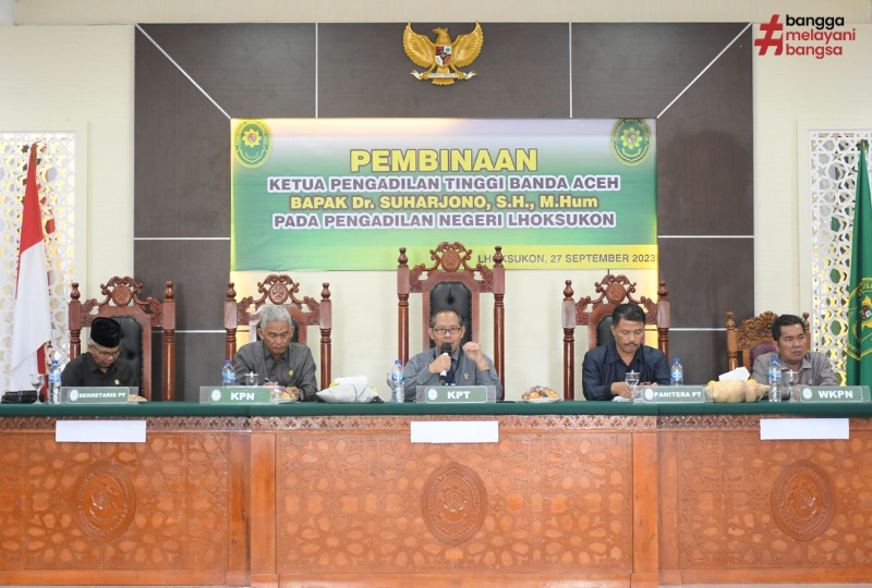 Banda Aceh, 27/09/2023 (Humas) - Ketua Pengadilan Tinggi (KPT) Banda Aceh Dr. H. Suharjono, S.H., M.Hum. didampingi oleh Panitera dan Sekretaris Pengadilan Tinggi Banda Aceh melakukan Pembinaan pada Pengadilan Negeri Lhoksukon, Rabu 27 September 2023.