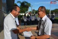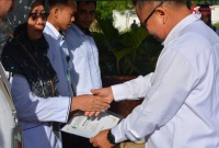 Banda Aceh, 18/09/2023 (Humas). Ketua Pengadilan Tinggi (KPT) Banda Aceh Dr. H. Suharjono, S.H., M.Hum. dan jajarannya menyerahkan reward bagi hakim dan pegawai teladan Pengadilan Tinggi Banda Aceh untuk periode September 2023 s.d. Februari 2024 disela kegiatan apel pagi Senin, 18 September 2023 di halaman depan Kantor Pengadilan Tinggi Banda Aceh Sementara.