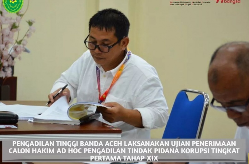 Banda Aceh (Humas) - (20/03/2023) Pengadilan Tinggi Banda Aceh melaksanakan ujian Seleksi Calon Hakim Ad Hoc Pengadilan Tindak Pidana Korupsi Tahun 2023. Ujian kali ini diikuti oleh 5 peserta dari latar belakang yang berbeda-beda.