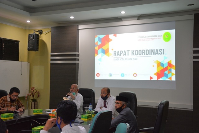 Pengadilan Tinggi Banda Aceh mengadakan rapat koordinasi internal, pada hari Selasa, 9 Juni 2020, yang dilaksanakan di ruang rapat Pengadilan Tinggi Banda Aceh. Rapat koordinasi tersebut dipimpin langsung oleh Ketua Pengadilan Tinggi Banda Aceh, Dr. H. Amril, S.H., M.Hum. dan dihadiri oleh Wakil Ketua Pengadilan Tinggi, para Hakim Tinggi, para Hakim Ad Hoc, Pejabat dan Fungsional Kepaniteraan, Pejabat dan Fungsional Kesekretariatan, dan para Karyawan/Karyawati Pengadilan Tinggi Banda Aceh.