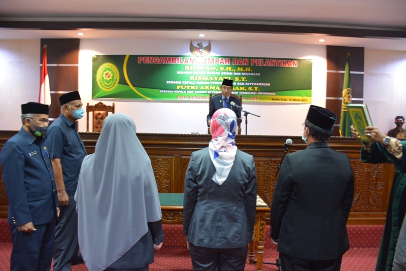 PENGAMBILAN SUMPAH DAN PELANTIKAN KEPALA BAGIAN UMUM DAN KEUANGAN, KEPALA BAGIAN PERENCANAAN DAN KEPEGAWAIAN, KEPALA SUB BAGIAN KEPEGAWAIAN DAN TEKNOLOGI INFORMASI PENGADILAN TINGGI BANDA ACEH
