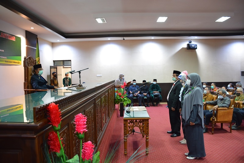 Banda Aceh - Ketua Pengadilan Tinggi Banda Aceh, Dr. H. Gusrizal, S.H., M.Hum., mengambil sumpah dan melantik Kepala Bagian Perencanaan dan Kepegawaian, Kepala Bagian Umum dan Keuangan, dan Kepala Sub Bagian Kepegawaian dan Teknologi Informasi Pengadilan Tinggi Banda Aceh, hari Kamis, 18 Maret 2021, pukul 14.00 WIB, di ruang sidang Pengadilan Tinggi Banda Aceh.